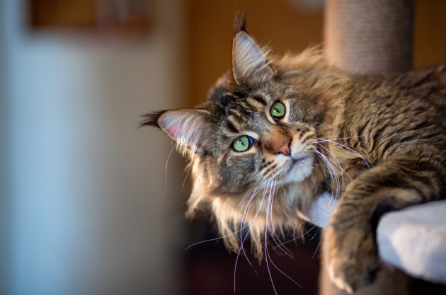 Любят следовать по пятам за хозяином. Если у владельца нет времени пообщаться с мейн-куном, питомец будет рад просто понаблюдать за ним. Эти кошки даже к незнакомым людям относятся как к друзьям. Любят играть, и даже могут приносить хозяину мячик — как это делают собаки.