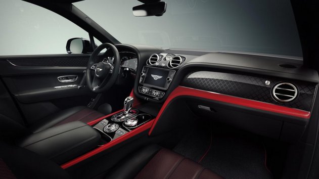 Салон Bentley Bentayga V8 в версии Design Series имеет 4 варианта оформления: Pillar Box Red, Orange, Mulliner White и Klein Blue. Приборная панель машины украшена карбоновыми вставками. Кроме того, приборную панель кроссовера наделили часами Breitling с бриллиантами и перламутровым циферблатом. Также для салона автомобиля предусмотрены особые коврики.