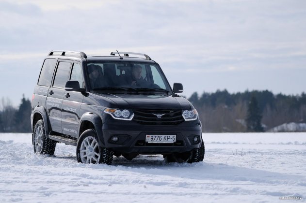 «Бампером собирает снег»: Блогер испытал УАЗ «Патриот» на заснеженном бездорожье - «Авто»
