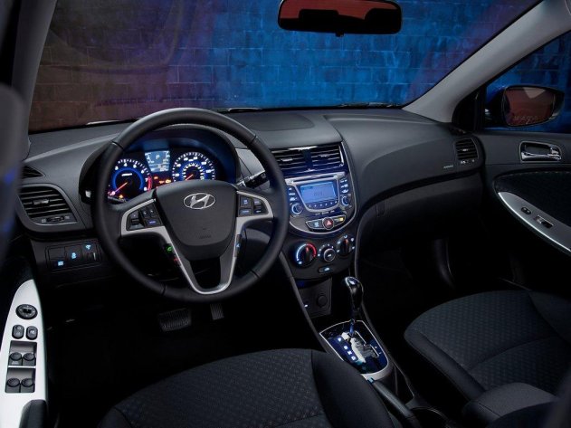 На передней панели Hyundai Solaris он повесил держатель для телефона, поставил новую систему мультимедиа на ОС Android, заменил кнопки климатической установки, вместо одного из прикуривателей сделал 2 порта для USB-зарядки. На центральном тоннеле некоторые ниши оформил светящимся в темноте неоновым шнуром и поставил новую ручку КПП.