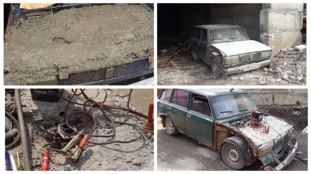 Найден оригинальный способ тестирования двигателя ВАЗ-2104 на его надежность и безотказность: просто залейте бетоном «четверку», и посмотрите, что будет.