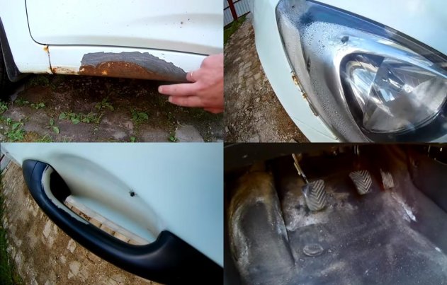 По периметру фар Hyundai Solaris отслаивалась краска, и рассказчик решил проблемные места изначально обработать преобразователем ржавчины, а потом уже подкрашивать. Так и было сделано, однако автор отмечает, что от такой покраски стало только хуже, потому что коррозия стала распространяться интенсивнее. В видео рассказчик также отметил, что у машины сильно запотевают фары, а еще в ролике можно увидеть ржавеющие стеклоочистители.