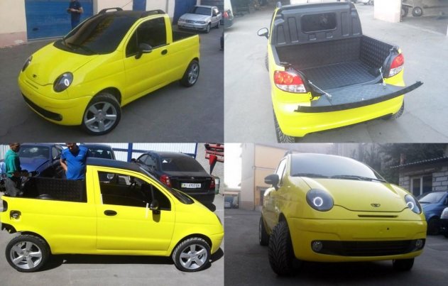 Накануне в одном из тематических сообществ во «ВКонтакте» появились фотографии маленького желтого пикапа, основой для которого послужил хэтчбек Daewoo Matiz. Судя по снимкам, автомобиль лишился задних дверей, а на месте заднего ряда обустроена грузовая платформа.