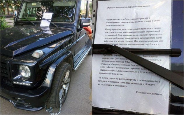 Чтобы минимизировать свои затраты и особо не заморачиваться, злоумышленник решил ограничиться покупкой «секреток» на колёса, которыми он просто заменил штатные болты автомобиля. Далее, как водится, владельцу машины было оставлено трогательное послание, в котором «ленивый» вымогатель предложил водителю заплатить за ключ от «секреток», иначе автомобиль попросту не поедет.