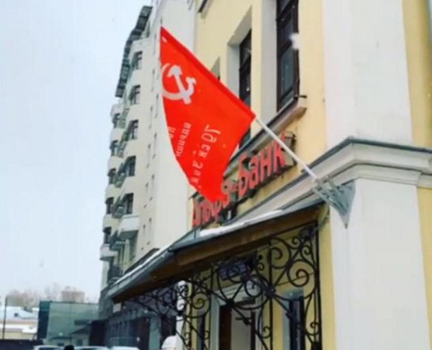 Шумиха вокруг историй с банковским мошенничеством и обманом не утихает на протяжении нескольких месяцев. Во избежание потери клиентов сотрудники банка используют всевозможные хитрости для привлечения внимания. Так, Альфа Банк в Москве повесил Знамя Победы перед входом. На углу здания, где расположен банк, сотрудники вывесили красный флаг с официальным символом победы советского народа над Германией в Великой Отечественной войне. Удивлённые жители Москвы поделились роликом в соцсетях.