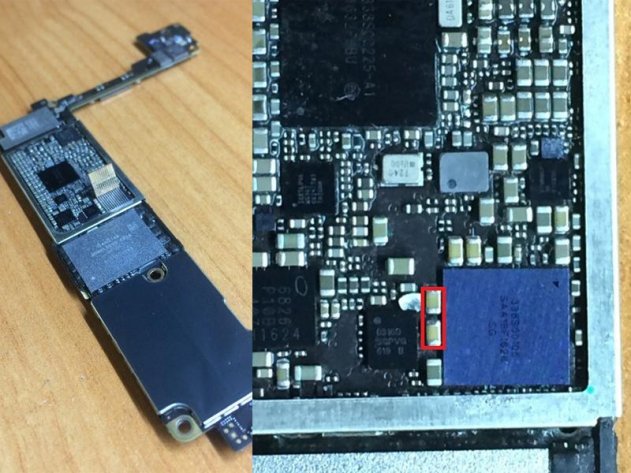 Для успешного ремонта микрофона iPhone 7 нужно знать, где на плате расположен узел, отвечающий за звук. Его еще называют аудиокодек. Часто бывает, что испорчена контактная площадка, маленькие медные квадратики на плате, под кодеком. Испорченную контактную площадку можно восстановить маленькой медной проволочкой, соединив ножки. После того, как пользователь проделал вышеописанную процедуру, микрофон iPhone 7 заработал, но при разговоре постоянно шипел. Ищем два фильтрующих конденсатора (на фото) емкостью 4,7 микрофарад. В примере с Pikabu один конденсатор оказался на 5,9. Дальше остается взять данный элемент с любой другой ненужной платы и поставить вместо испорченного. Таким образом, можно самостоятельно починить свое устройство, а это дополнительная экономия средств.