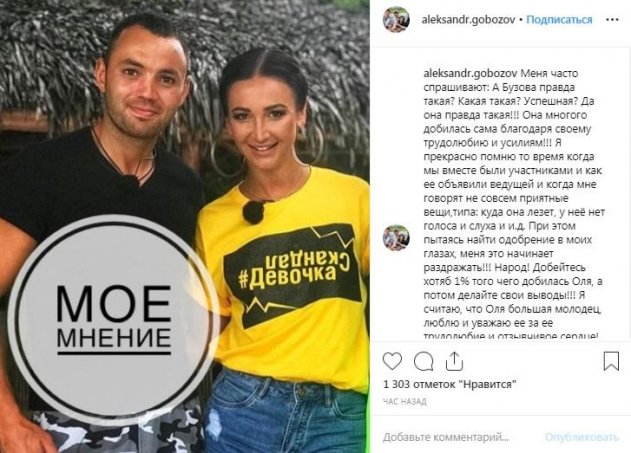 Бузова никак не может найти мужчину и даже постоянно обращается к своим подписчикам, чтобы хоть кто-нибудь из них решился с ней познакомиться. Видимо, один такой все-таки нашелся. Им оказался бывший участник «Дома-2» Александр Гобозов, который знает Олю много лет. На своей странице в социальной сети он написал трогательное послание звезде, в котором восхитился ее трудолюбием, целеустремленностью и другими качествами.