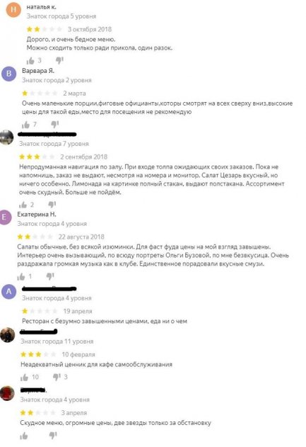 Юзеры, все чаще, критикуют скудное меню, маленькие порции, завышенные цены и некачественный сервис заведения. Посетители называют БузФуд рестораном «на разок», в который можно сходить только «ради прикола».