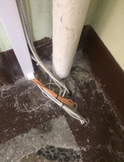 Житель Санкт-Петербурга снял фото, на котором интернет провайдер просто проломал пол в разных местах, чтобы провести провода.