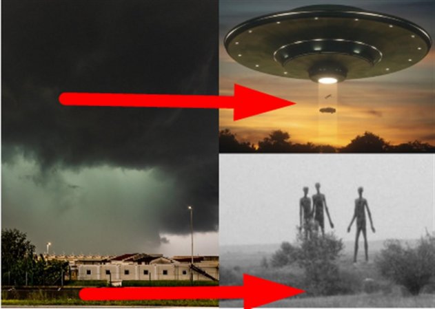 Девушка говорит, что нашла подобное фото, которое не смогла сделать. Уфологи подтверждают, что пришельцы с Нибиру маскируются в грозовых суперячейках. Для получения лишнего шанса собрать энергию с ядра Земли инопланетяне делают обманные манёвры и действительно проявляются сквозь сильную облачность и даже дождь.