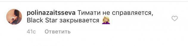 Реклама провального альбома стала последней каплей в чаше терпения фанатов. Они вылили на Тимати весь накопившейся негатив. «Тимати не справляется, Black Star закрывается», - комментируют публикацию пользователи сети.