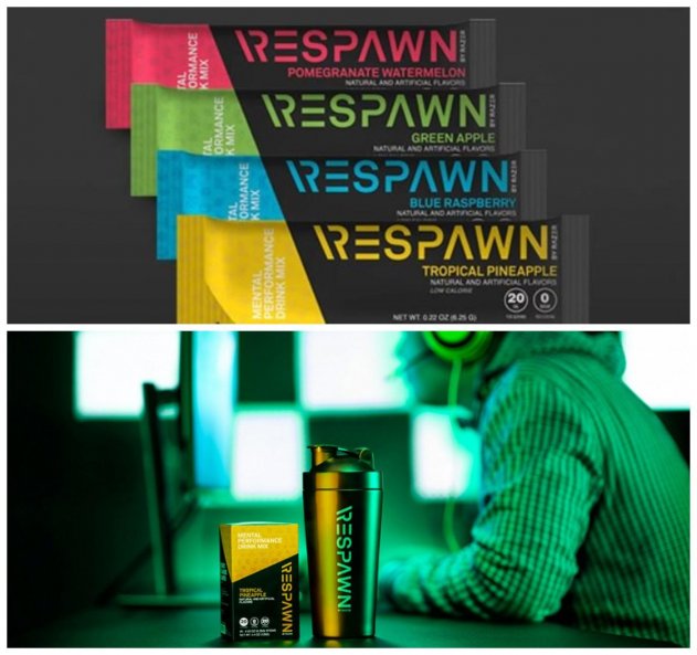 По заявлениям Razer, растворимый напиток Razer Respawn позволит игрокам «прокачать» свой мозг. В состав порошка будут природные психоактивные компоненты: кофеин, холин, группа витаминов B, имбрирь, и экстракты из чайных листьев. L-теанин содержащийся в чае, относится к активным психо-стимуляторам, и помогает игроманам «держаться на плаву» во время долгих матчей.