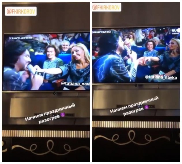 В «сториз» артиста появилось видео, на котором была запись концерта 2016 года. Одними из гостей стала пара Навки и Дмитрия Пескова. Во время исполнения очередного хита Филипп спустился в зал и стал перед фигуристкой на колени. Он взял Навку за руку и начал её целовать совершенно без стеснения перед Песковым.