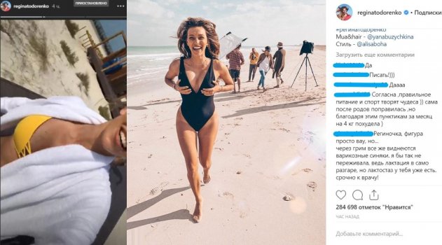 Тревогу забили обожатели Тодоренко. Блогерша показала им фигуру после родов, чем восхитила нерожавших женщин и напугала мам с опытом грудного кормления. В кадре Регина бежит на съемку, то бишь, не исключено, что открытые части тела, включая грудь, были «обработаны» визажистами.