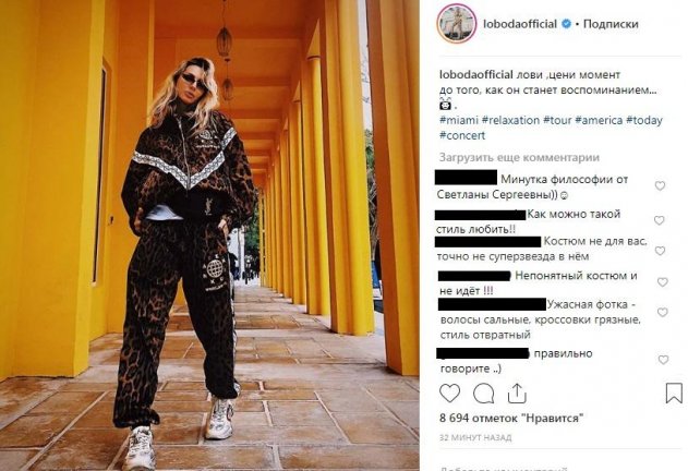 По мнению подписчиков суперзвезды, Лобода в «леопарде» явно опозорилась в Instagram. Фанаты также напомнили знаменитости, что то, что считается стильным и модным в Штатах, скорее всего не поймут простые россияне.