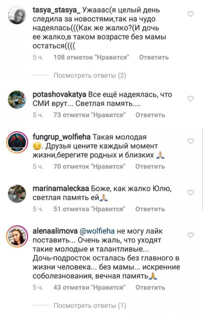 затем Максим Галкин, Иосиф Пригожин, Сергей Лазарев и многие дрегие артисты. Если зайти в Instagram, то невозможно не заметить, что вся страна выкладывает фотографии, видео с выступлений Юлии, пишут какой она запомнилась и не могут поверить в страшную реальность.