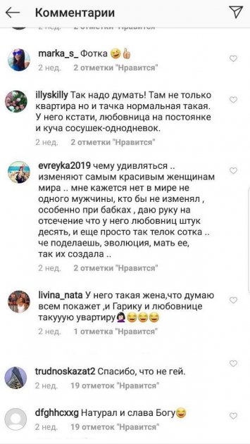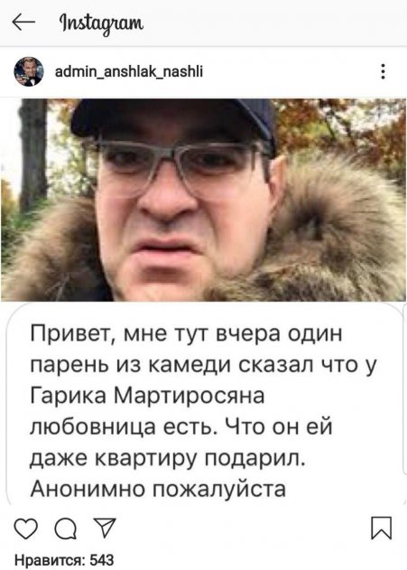 В одной из групп Instagram появилась информация, что Гарик Мартиросян был замечен с молодой любовницей с внешностью фотомодели, и якобы, он подарил ей квартиру. Пользователи в сети, решили, что данная информация похожа на правду, такой мужчина как Гарик, может позволить содержать себе не только жену и любовницу.