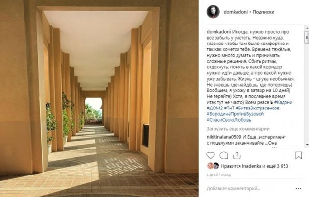 «Сбить ритмы, отдохнуть, понять в какой коридор нужно идти дальше, а про какой нужно уже забывать», - пишет Кадони в Instagram.