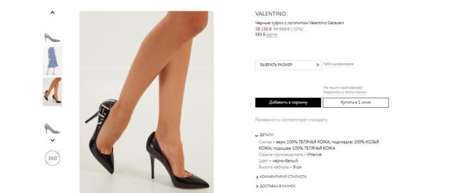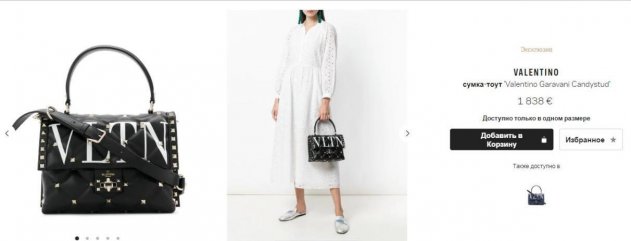 Оказалось, что обувь и сумка от фирмы Valentino относительно недорогие: лодочки всего лишь 38,5 тыс. рублей, а аксессуар 134 тыс. рублей.