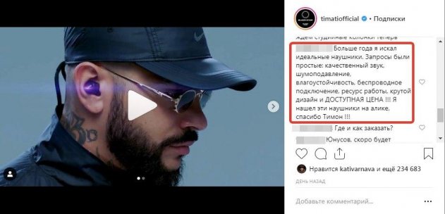 Нашлись и те, кто защищал своего кумира: «А может там начинка внутри другая. Еще вполне возможно что на Али это подделка хорошей фирмы. Без обзора сравнения двух таких наушников это все нелепо», «Да быть такого не может, Тимати продаёт только качественный продукт».