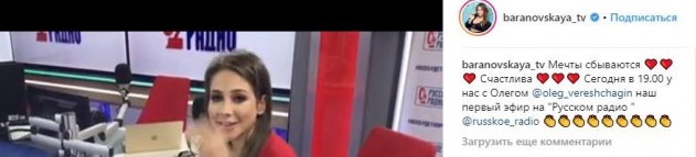 Скорее всего, Юлия Барановская уйдет на «Русское радио» с Первого канала. Об этом свидетельствует ее публикация в соцсети.