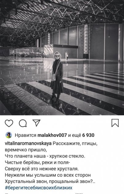 Кроме того, девушка продолжила и под своим постом оставила хэштег #берегитесебяисвоихблизких, что явно символизирует чей-то уход. Пользователи предположили, что в скором времени выйдет передача «Прямой эфир» с Андреем Малаховым, где Виталина подробно расскажет об изменах своего мужчины. Несколько недель назад в сети прошел слух о том, что ее возлюбленный Прохор Шаляпин был замечен в аэропорту Лос-Анджелеса с некой пышногрудой американкой. Девушка внешне напомнила очевидцам бывшую супругу Прохора – Алену Калашникову, на вид ей лет 22-25, рассказали в соцсети Instagram. По словам очевидцем, американка провожала Прохора на рейс до Москвы в Шереметьево. Выглядела девушка очень эффектно и очень дорого, демонстрируя ридикюль и обувь от известного бренда.