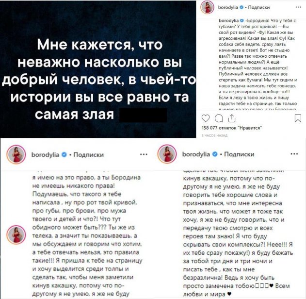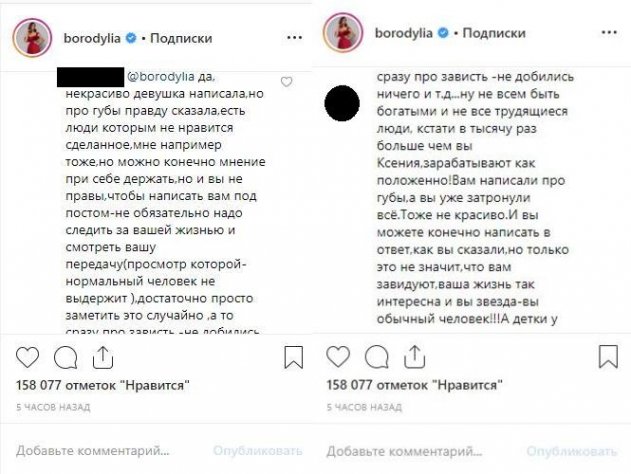 Как заметили другие комментаторы, чем больше и агрессивнее знаменитость реагирует на критику своих недостатков, тем больше хейтеры бьют ее «больные места». Фанаты посоветовали Бородиной просто игнорировать провокаторов, и тогда ни у кого не создастся впечатление, что правда режет ведущей глаза.