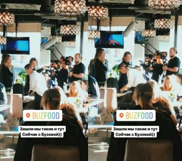 Знаменитости, что-то обсуждали, а организаторы готовили съемочное оборудование. В процессе наблюдения, посетители кафе предположили, что Собчак снимает своё шоу. Пользователи сети были шокированы, от того, что Собчак пришла с просьбой к Бузовой после того, как полила её грязью в сети. Стоит заметить, что Бузова уже далеко не та белокурая простушка из «Дом-2», перед Собчак стояла Ольга Игоревна Бузова популярная певица и хозяйка кафе. Сложив руки, Ольга демонстративно показывала «кто в доме хозяин» и Собчак пришлось с этим смириться.