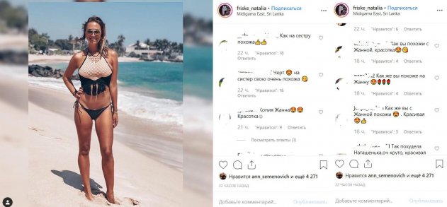 Практически под каждой публикацией подписчики Наталии, которых более 70 тысяч человек, поражаются схожести Фриске-младшей с покойной певицей. Новая публикация и вовсе шокировала интернет-публику. Поклонники попросту подумали, что Наталья опубликовала снимок Жанны. «Как же вы на сестру похожи», «Невероятное внешнее сходство», «Вылитая Жанна», - удивляются фолловеры. Наталию действительно просто напросто не узнать. По мнению пользователей сети, сестра певицы добилась желаемого результата благодаря похудению – стала «копией» своей популярной родственницы.