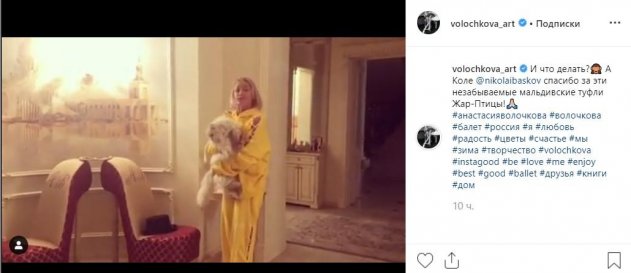 Анастасия Волочкова призналась своим подписчиком в одном из видео в Instagram, что не любит 15- сантиметровый «каблук». Женщина на видео сказала: «Дорогие друзья, смотрите! Я пришла домой и вижу, что вот у меня обувь стоит, самая моя любимая, любимый размер каблуков…Ну, 15 сантиметров это мало, поэтому у меня всё вот так!»