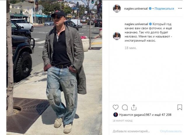 «Меня так и называют - инстаграмный насос!», - заявил Нагиев в личном микроблоге.
