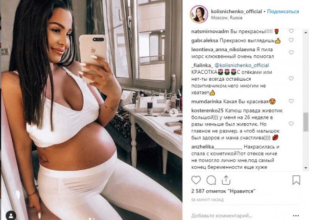 Их догадки подтверждаются и рассказом Колисниченко, который она сегодня разместила в личном Instagram-аккаунте. Как оказалось, в последнее время она стала страдать от сильных отеков. Знаменитость призналась, что во время беременности у ее «нет стабильности внешнего вида». Иногда после наложенного макияжа она выглядит как голливудская звезда, а в другой раз не помогает даже он, настолько изуродованной она себя видит: «Отеки по всему телу... Лицо какое-то бесформенное, в котором утонули глаза».