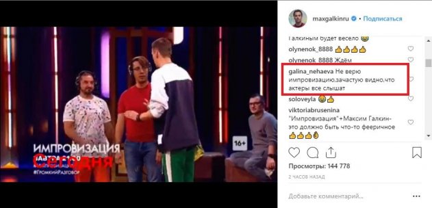 Эту программу с удовольствием смотрят многие зрители, однако достаточно у нее и хейтеров. Последние считают, что она состоит из сплошного обмана. «Не верю в импровизацию, зачастую видно, что актеры все слышат», - пожаловались они. А когда эти пользователи сети посмотрели рекламный ролик выпуска с Галкиным, они в очередной раз убедились в своей теории и даже заявили, что тот «спалил» притворство участников шоу.