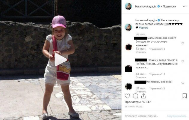 Поклонники решили, что Барановская публично унизила дочь в Instagram. Телеведущая выложила в своем микроблоге архивное видео дочери Яны, на котором девочка поет. «Не позорь ребенка!» - заявили фанаты.