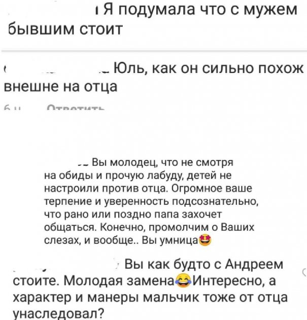 В комментариях под совместной семейной фотографией поклонники отметили, что статный и высокий мальчик стал «копией» Аршавина. Многих удивило, что примерная мама Юлия решила взять с собой во взрослый ресторан совсем юного сына. Они предположили, что общением с ребенком, который напоминает ей потерянного возлюбленного, Барановская компенсирует «амурную боль».