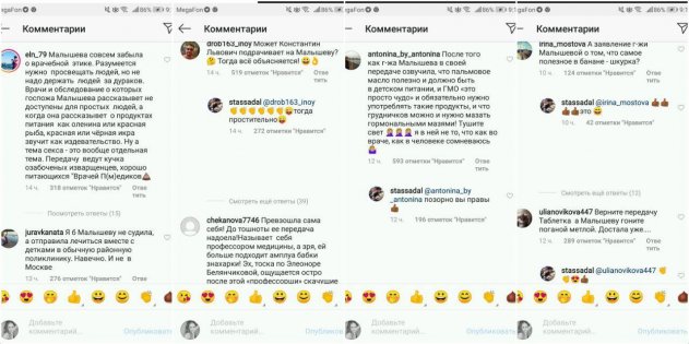 «После того, как Малышева в своей передаче озвучила, что пальмовое масло полезно и должно быть в детском питании, И ГМО – это просто чудо и обязательно нужно употреблять такие продукты, и что грудничков можно и нужно мазать гормональными мазями. Тушите свет. Я в ней не то, что как в враче, как в человеке сомневаюсь», - пишет телезрительница.