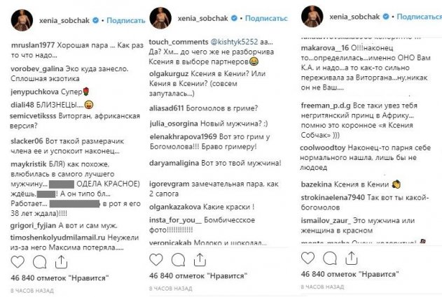 «До чего же неразборчива Ксения в выборе партнёров», «Ксения в Кении, или Кения в Ксении? Совсем запуталась», - пишут в сети.