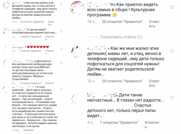 Фолловеры считают, что Филипп Бедросович отдан лишь сцене, а Мартину и Алле-Виктории он практически не уделяет внимания. Из-за отсутствия родительской заботы и любви наследники певца растут несчастными и закомплексованными детьми, отмечают пользователи.