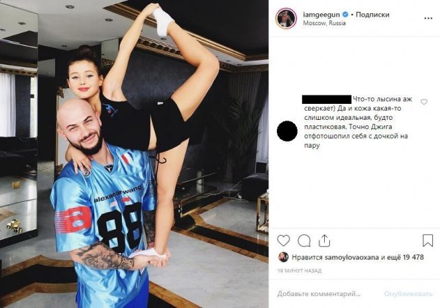 На новом снимке знаменитая лысина репера «аж сверкает», пишут в комментариях под снимком. Сеть критически относится к тем, кто так сильно изменяет снимки в фоторедакторах, из-за чего нередко кожа обычных людей начинает казаться какой-то нереалистичной и «пластиковой». Фанаты Джигана думают, что он «отфотошопил» не только свою лысину, но и дочь.
