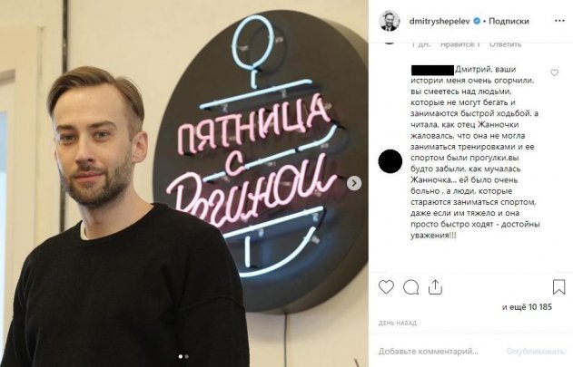 Фанаты ведущего решили, что тот высмеял прогулку людей, которые не могут бегать, и осудили его за это. Поклонники считают, что Шепелев «забыл, как мучилась Жанна», что ей было больно, но она продолжала, заниматься спортом по мере своих возможностей. И действительно, в 2015 году из-за болезни Жанна Фриске не могла отдаваться спорту в полной мере, как бы ни хотела. Певица должна была много времени проводить на свежем воздухе, гулять точно так же, как это делают те люди, которые почему-то заслужили от Шепелева не похвалы за старания, а только издевательскую насмешку. Не ясно, почему знаменитый ведущий мог так ожесточиться, почему перестал пытаться сопереживать людям, ведь если они не бегают, как атлеты, это может означать то, что они просто не могут это делать по каким-то своим причинам.