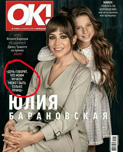 Даже одиннадцатилетняя дочь Юлии Барановской убеждена в том, что её мама выйдет замуж только за принца. Такой информацией ведущая поделилась, когда давала интервью журналу «ОК».