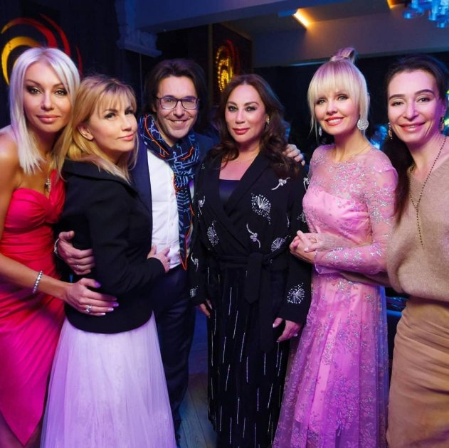 Похоже, лишь один Пьеха не был рад своему присутствию в компании. На фотографиях он запечатлен в обычных джинсах, водолазке и жилетке сверху. Складывается впечатление, будто он и вовсе не хотел приходить на день рождения своей коллеги, однако все же заставил себя сделать это, будто это одолжение для нее.