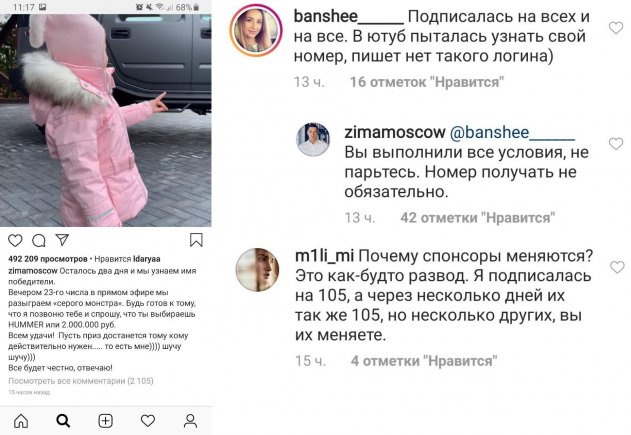 Необходимо заметить, что каких бы денег не обещал Омаров, он не потратит на него ни рубля. Весь розыгрыш проплачен рекламными организациями. То есть, хитрый Курбан убьет нескольких зайцев за выстрел, а именно избавится от проблемной старой машины, подзаработает денег и предстанет белым и пушистым перед подписчиками, якобы просто подарил. Не исключено, что скандал со Светлаковым был хитрым планом по привлечению внимания перед грядущим конкурсом. Посещаемость его профиля возросла почти вдвое, многие вовсе не знали, кто такой муж Бородиной. То есть проще говоря, Омаров мог заработать на популярности Светлакова, который вообще никак непричастен к этому. А через пару дней, когда популярность подросла и окрепла, он запускает странный конкурс. К слову его подписчики полны сомнений по части условий розыгрыша.