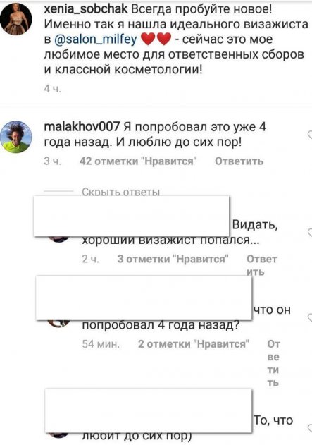 Ксения Собчак рассказала о «новом опыте». Ведущая призналась, что недавно рискнула, и в результате нашла своего «идеального визажиста» и открыла для себя лучшее место для «ответственных сборов и классной косметологии». Ее предпочтение неожиданно одобрил коллега Андрей Малахов, который раскрыл свою «тайную любовь» к косметологии в комментариях у светской львицы. Телеведущий признался, что уже четыре года пользуется услугами данных мастеров, работу которых «полюбил» после первого же посещения.