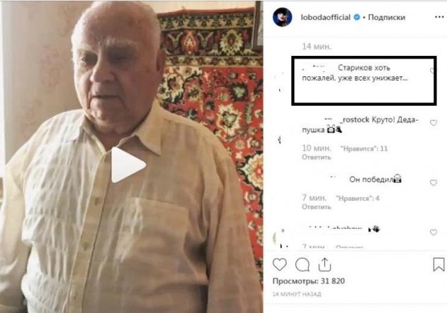 В Instagram Лобода опубликовала ролик, где пожилой мужчина зачитал отрывок песни. И хотя дедушка отлично справился, очевидно, мужчина учувствует в подобном впервые и не от любви к певице. Предполагается, седовласый «рэпер» намеривался выиграть денежный приз, а никак не «прославиться» в соцсети знаменитости. К слову, фанаты на поступок певицы отреагировали негативно и «разнесли» Лободу за пиар на престарелых людях. «Стариков пожалей»,— пишут в комментариях подписчики. Как бы там не было, а с таким поведением Лобода рискует окончательно испортить репутацию.
