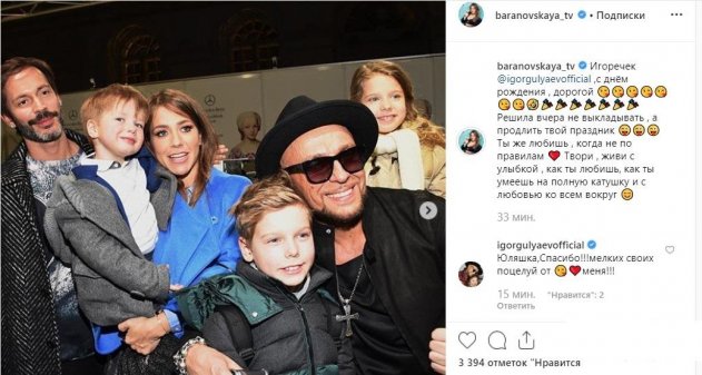 Юлия Барановская, знаменитая «мама-героиня» главного телеканала страны, насмешила фанатов своими потугами загладить вину перед Игорем Гуляевым, которого женщина забыла поздравить с юбилеем. В свой 50-летний юбилей российский дизайнер и друг Юлии целый день делился поздравлениями своих родных и близких людей, и, конечно, Юлия, будучи подписанной на Игоря, видела о его торжестве, но поздравлять не стала.
