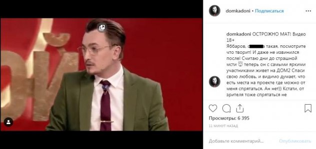 На днях в эфире программы «Бородина против Бузовой» произошёл скандал, участниками которого стали ведущий Влад Кадони и участник реалити-шоу «Дом-2» Илья Яббаров. Фрагмент с программы Кадони разместил на своем Instagram-аккаунте, где зрители и поклонники телеведущего увидели, как его жестоко унизил Яббаров, облив из-за спины водой. Скандального мужчину сразу же вывели из студии, а Ксения Бородина попросила Илью вернуться.