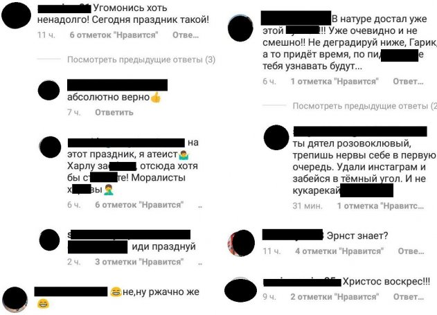 Видимо, Гарик не в курсе или совсем равнодушно относится к чувствам верующих, ведь подобный аморальный юмор в день Пасхи многие посчитали настоящим богохульством.