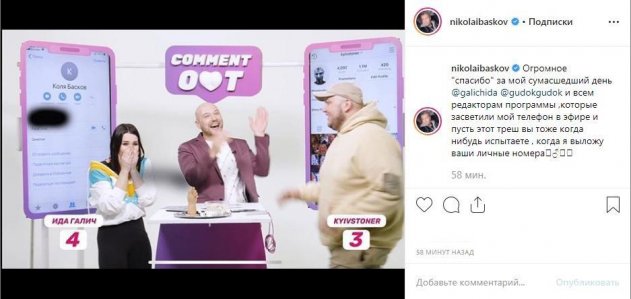 Неожиданный пост появился на странице у «золотого голоса» России Николая Баскова – это не реклама, и даже не селфи, а гневный пост с жалобой на передачу с комиком Александром Гудковым и на него самого. Артист приложил к посту скриншот из шоу Comment Out, где на одном из двух экранов высветился его личный номер телефона.