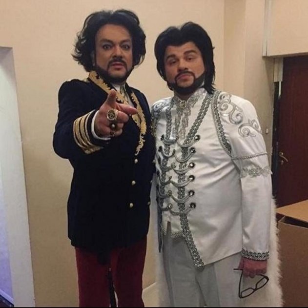 Показав необычный снимок, он поздравил Филиппа Бедросовича с днем рождения и начал рассыпаться в пожеланиях: «Здоровья, энергии... бравов, бисов... мира над головой, мира под головой, мира вокруг головы, рублей, евро, долларов, домашних животных, перьев, машин, хорошей погоды, друзей настоящих, микрофонов чистых».